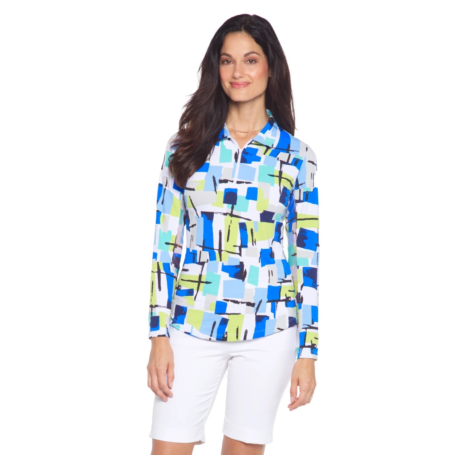 - Product Name: Mondrian Carie Print Long Sleeve Mock Neck Top – 10855